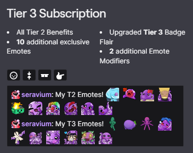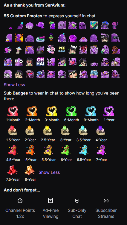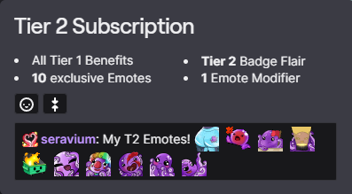 Twitch Follower emotes are free to use only on SerAvium's channel to anyone that drops her a follow! Use these free emotes to engage in chat!